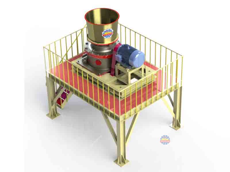 PYY圓錐破碎機工作時:電機帶動破碎機的小齒輪,小齒輪帶動大齒輪,大齒輪組件(大齒輪、大齒輪架、偏心鋼套)帶動偏心套組件(偏心缸套、偏心銅套)和主軸組件(主軸、內錐、內錐襯板)以理論垂直線為中心,在銅襯套內公轉,主軸組件在偏心銅套內以主軸的中心線可以實現自轉??諜C運行的時候,偏心套組件“抱著”主軸組件和隨大齒輪一同公轉,當物料加入到破碎腔后,主軸總成(主軸、內錐)在物料的阻力下在偏心銅套內緩慢的自轉。內錐的運行軌跡看起來是在破碎腔內來回擺動,同時緩慢的旋轉。物料被擺動的內錐擠壓破碎。支撐套與架體連接處靠液壓缸壓緊,當破碎機內落入金屬塊等不可破碎物體時,單缸的動錐由底部液壓活塞托起,起到排放口調整和過鐵保護、反復起落排除堵礦的作用。